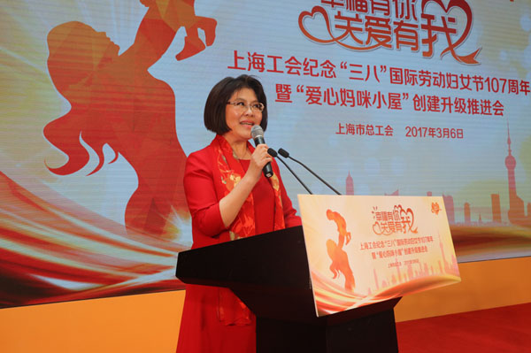 上海市人大常委會副主任、市總工會主席洪浩首先針對關(guān)愛女職工實施服務,維護女職工各項權(quán)益為主題進行致辭。